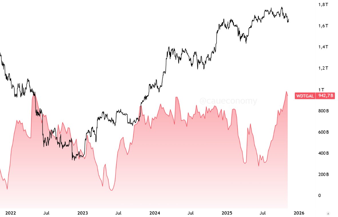 This movement tends to alleviate short-term stress on funding, precisely when the Fed prepares to end QT (Quantitative Transfer) in December.