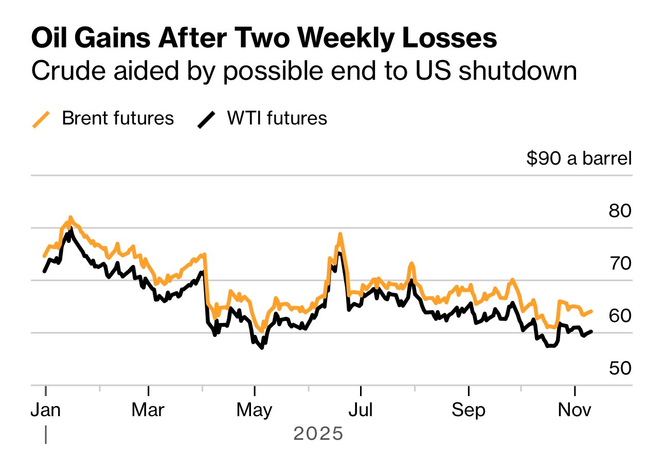 The market is reacting to the possible end of the shutdown in the US and the expectation of important data throughout the week, which should show whether the risk of oversupply is gaining traction.