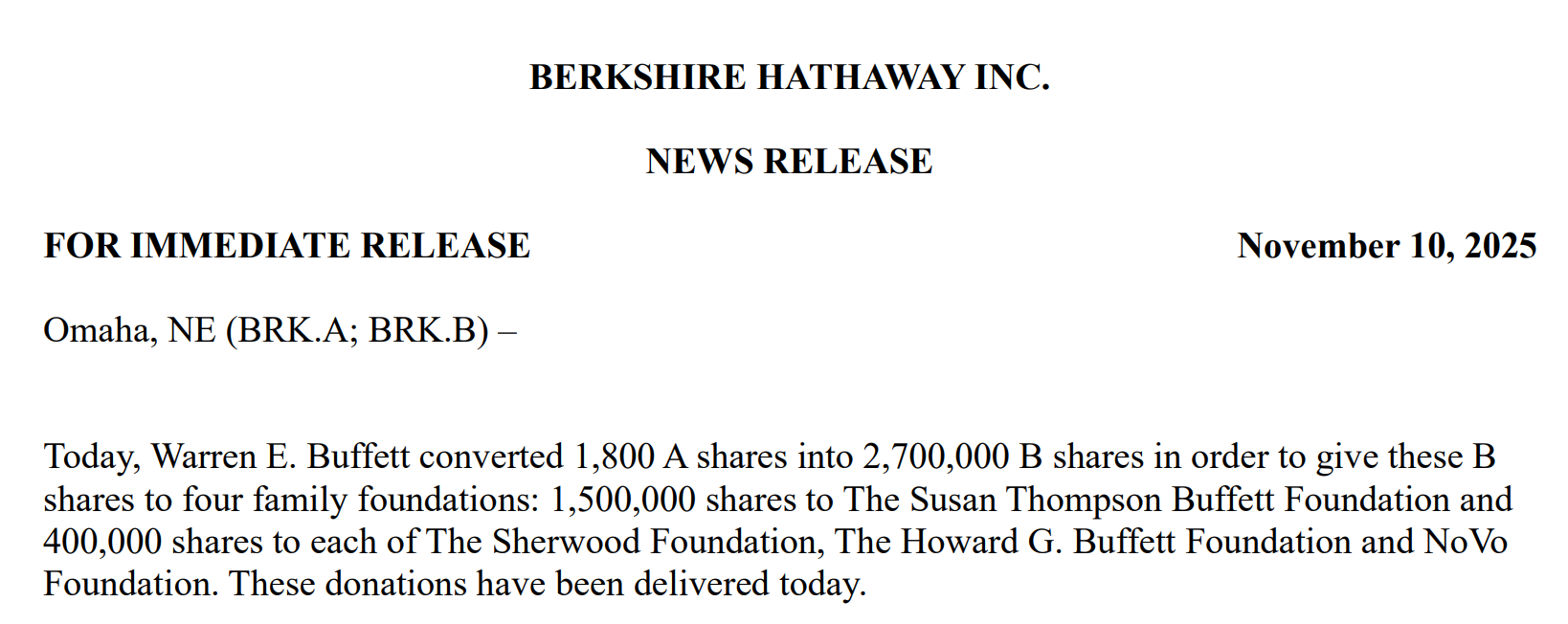 Note, 2,700,000 BRK.B is a nice lil $750m... lol, the rich live in a world of their own.