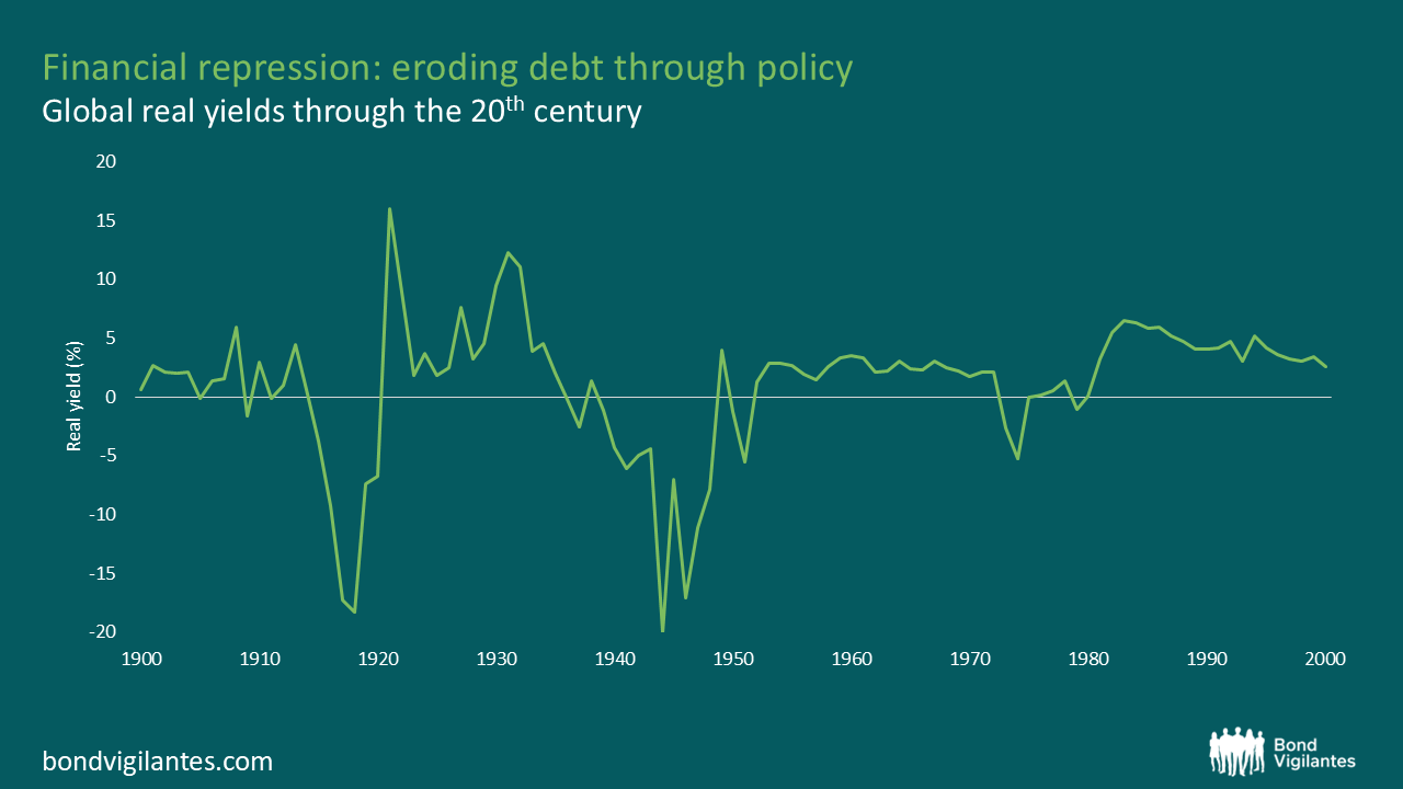 Government debt levels continue to linger in uncomfortable territory across developed markets, with fiscal deficits stubbornly high despite reasonably resilient growth and employment – especially when compared to past norms. This is not a post-crisis or post-war moment, yet debt levels resemble those of an economy fighting its way out of recession.Runaway levels of debt, and the question of how they can be contained, could well be the defining macro story of the next decade. This not only has implications for public finances, but also the trajectory of yields, inflation, and the credibility of future policy.High debt is not new, with history being full of examples of governments facing daunting fiscal positions, and each era has found its own way out: sometimes through discipline, sometimes through inflation, and sometimes through quiet financial engineering. Earlier this year, Rob Burrows explored options for dealing with debt in this blog. Following on from that, below I explore if there are any useful lessons in history which could provide a solution for today’s backdrop.Financial repression: The silent partner in debt reduction