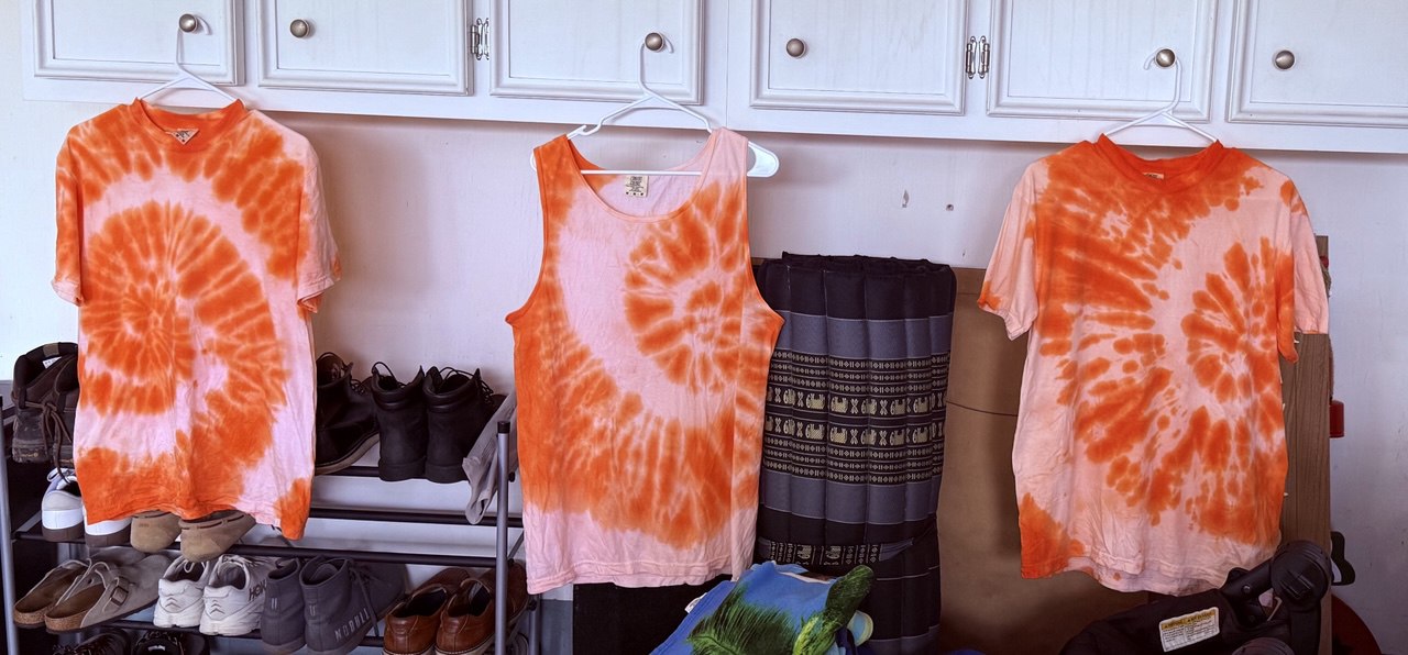 The preparation for Lake Satoshi started early, procuring a tent, gathering food, cigars, and making tie dye t-shirts for the circular economy. Each shirt was crafted with care! To my surprise, during the washing of the shirts I discovered a hot water tank leak!