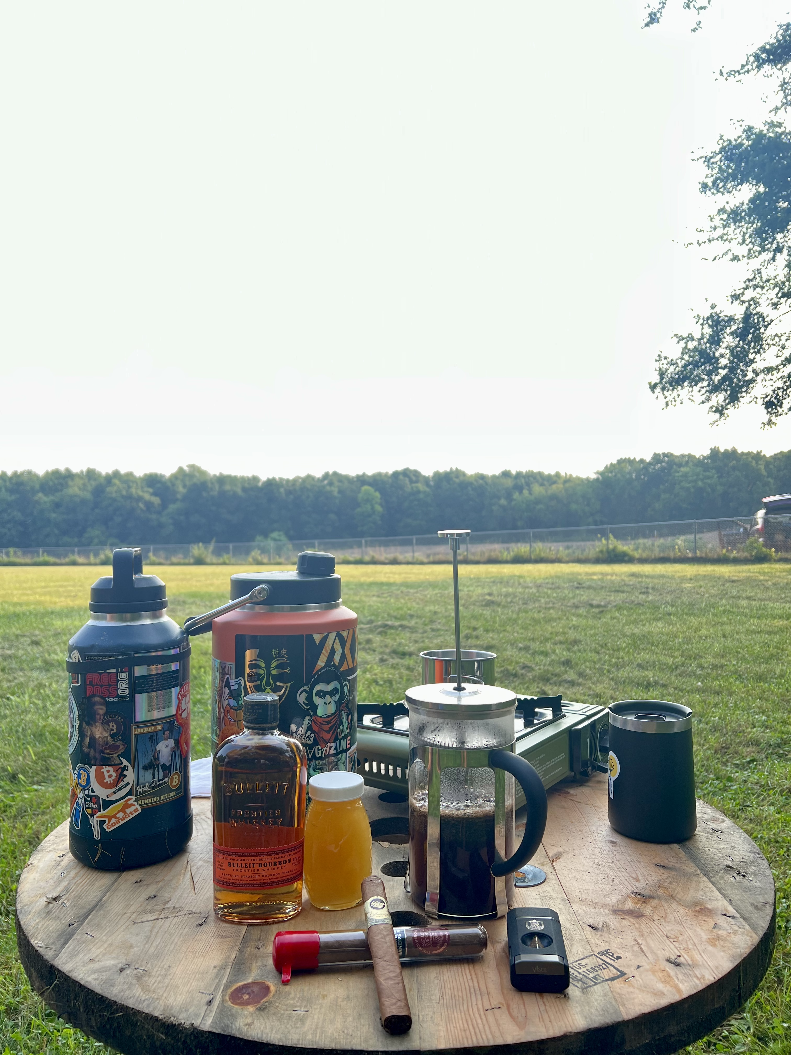 I woke up to a pleasant sunrise, veiled in smoke from the Canadian forest fires. Poor air quality could not ruin the vibes! We promptly started on coffee before heading to morning yoga with friends. 🧘