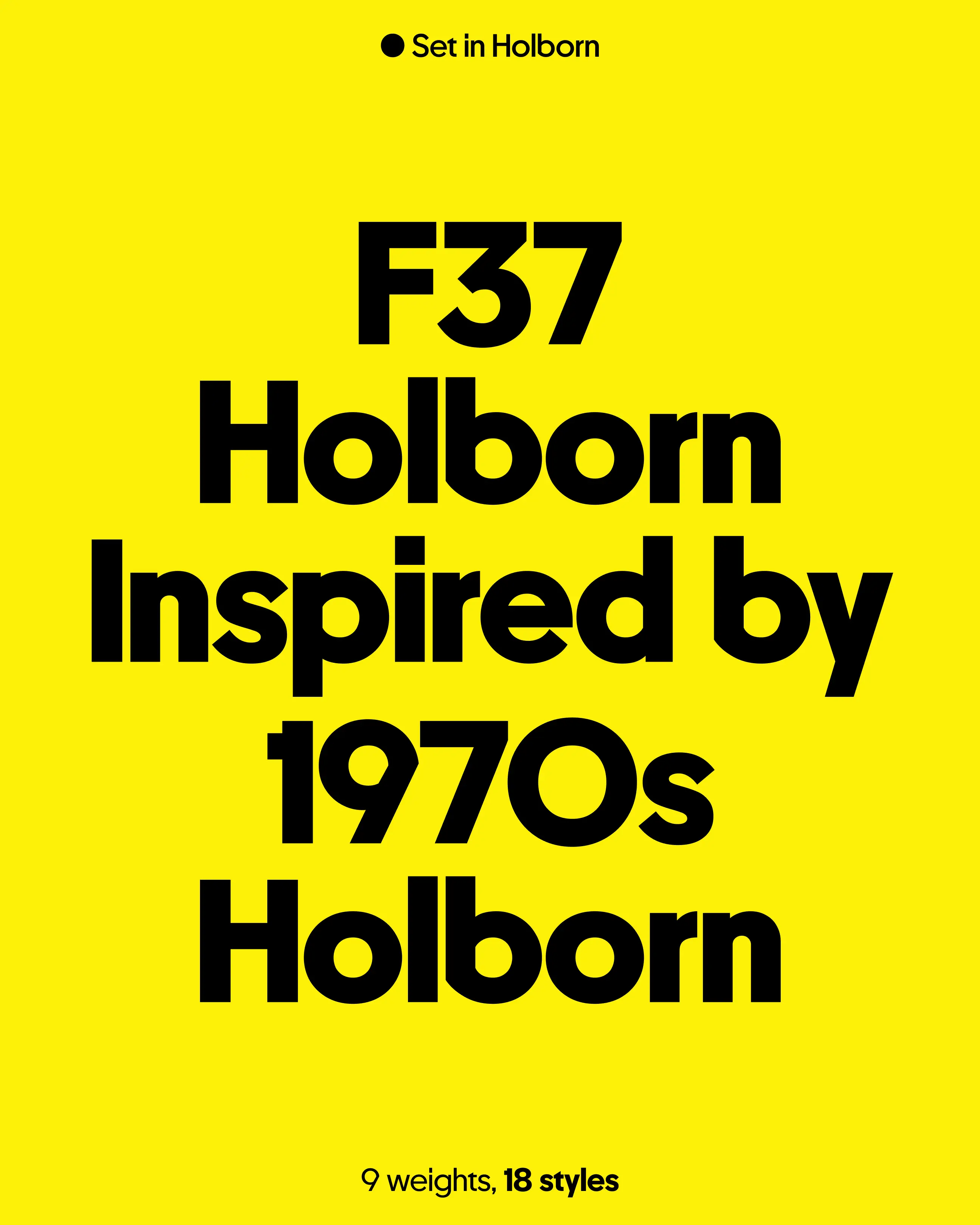 Nomad studio partnered with F37 to launch their latest typeface, F37 Holborn. Inspired by advertising and shop signs found in 1970’s Holborn, the specimen is a celebration of one of London’s oldest commercial districts known for its eclectic mix of businesses from diamond dealers to West End theatres and family law firms.