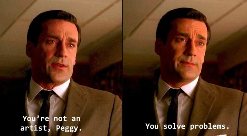 The other day I had a conversation with a friend and it made me think about this scene from MadMen (as I was roughly paraphrasing it myself in a conversation).