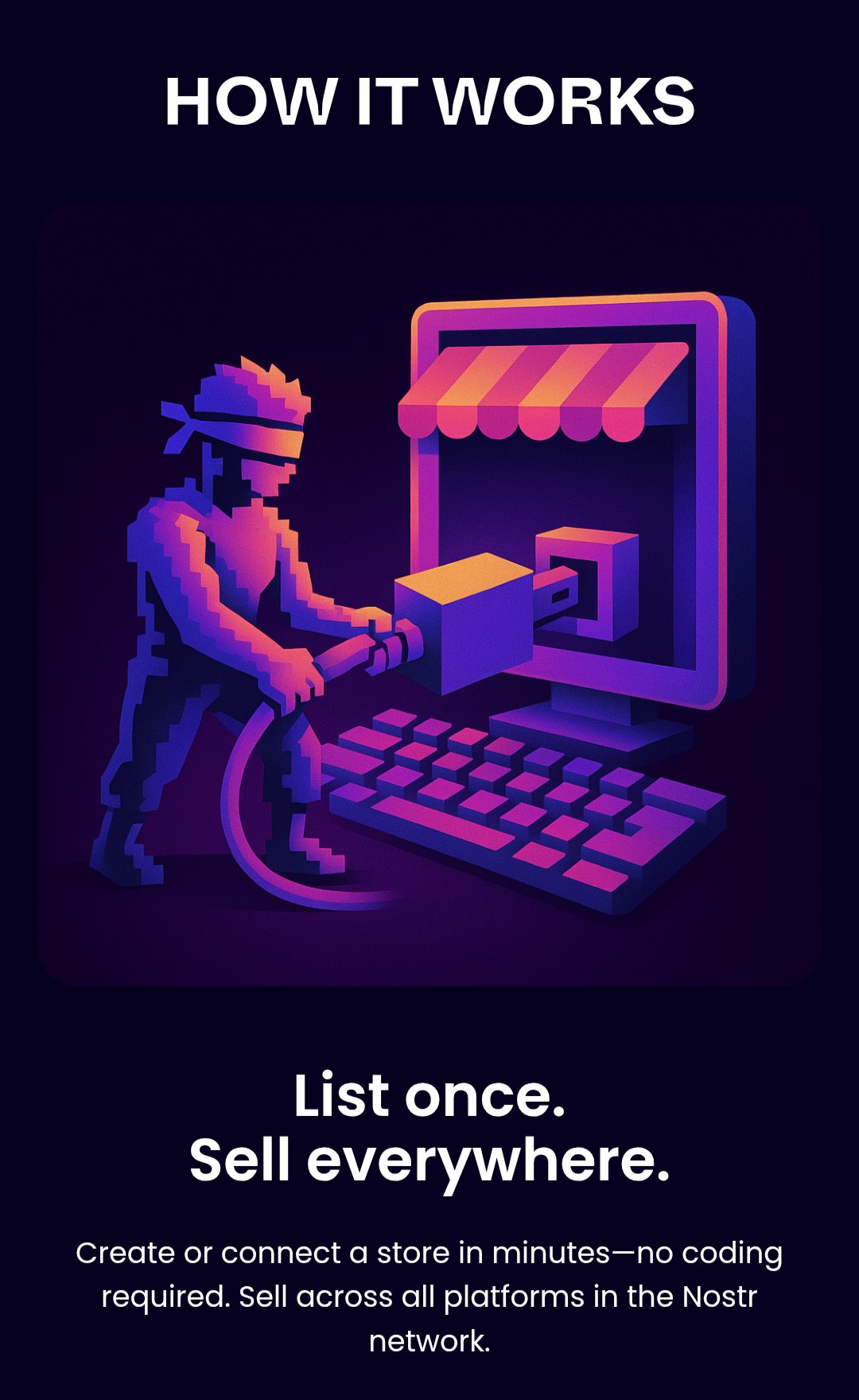 How do I buy something on Conduit? However the merchant chooses! Conduit smoothly connects you, letting you effortlessly pay with Bitcoin, eCash, or even stablecoins—bringing familiar convenience without sacrificing freedom or privacy.How do I open my own shop? Setting up is simple and free:Create or import your Nostr keypair Connect your preferred wallet (Bitcoin, Lightning, eCash, stablecoins) Publish products using our Merchant Portal, managing orders and customer messages yourself. Your products will appear across all Nostr marketplaces—not just Conduit Market! Shoppers can reach you from any Nostr enabled application.When you're ready to grow, you can upgrade to our paid services that help you automate your store without losing your sovereignty or privacy. > We're here to help give your customers a seamless experience while keeping control firmly in your hands.