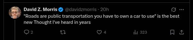 This extends well beyond cities. The whole transport system would look very different without the enormous subsidies to roads.
