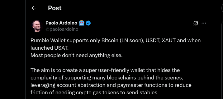 Never the less, the wallet looks interesting. Not sure if I'm gonna download it though. Tether sponsored closed source social media app wallet is a little much for even my old testing phone...