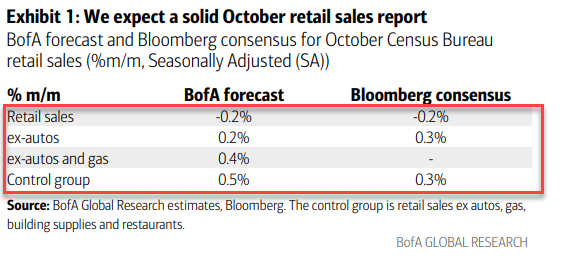 After two months of nothing, the avalanche of actual government-supplied macro data begins in earnest with Retail Sales (for September). BofA's omniscient analysts expected a small beat...