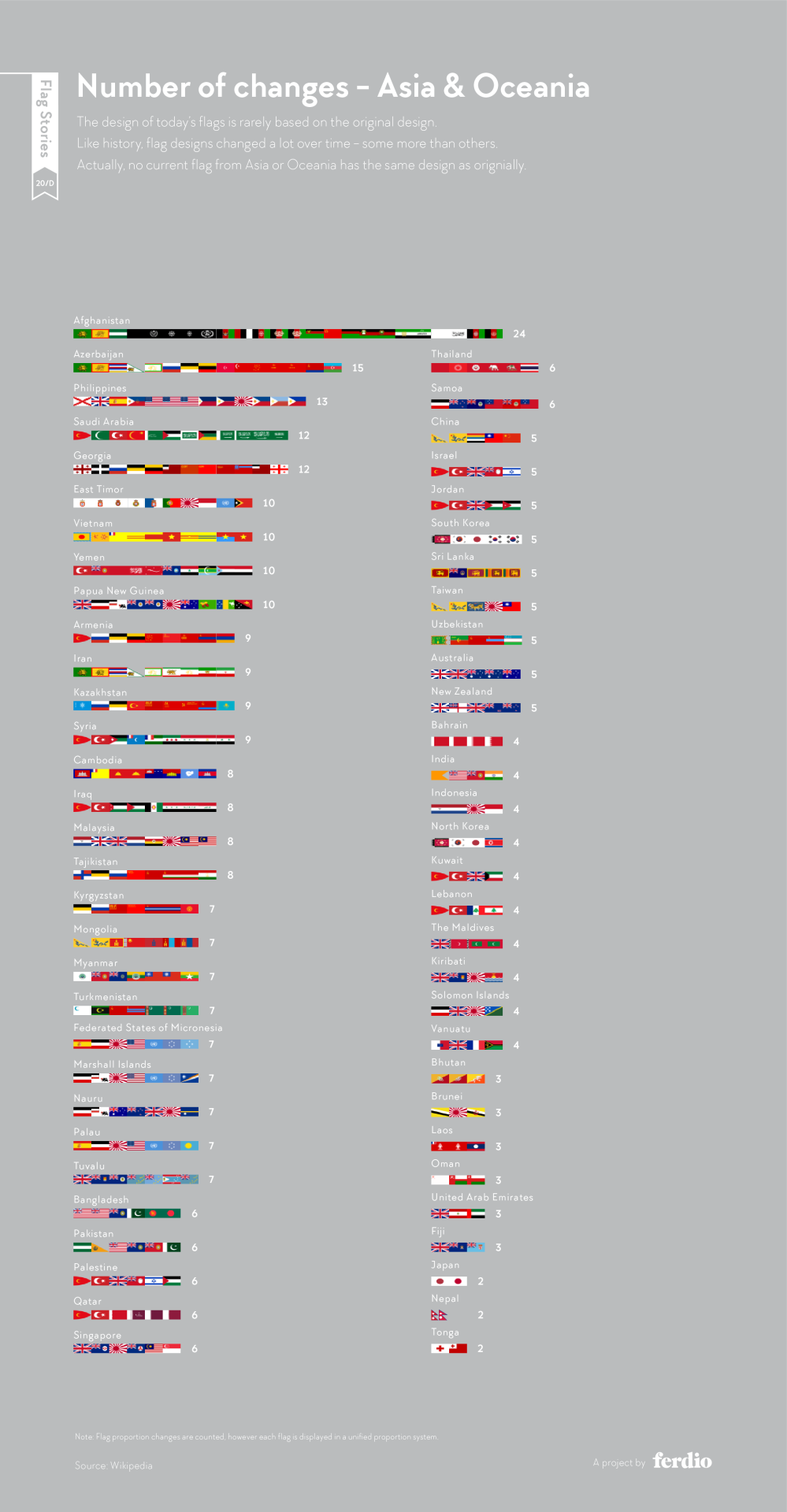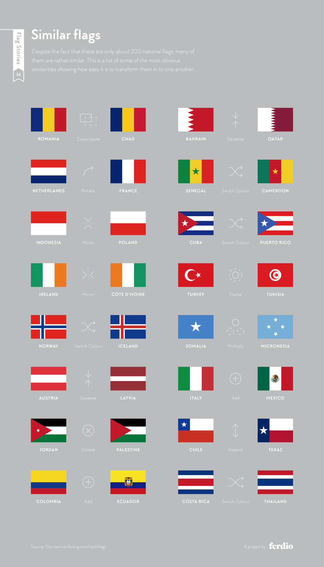 Sure, there are a lot of books and websites covering the different aspects of flags like history, demography and culture, through heavy text, but we wanted to add new aspects to this field by only looking at the graphics and telling the story visually. So we started this Flag Stories project to discover the hidden stories behind the graphics.