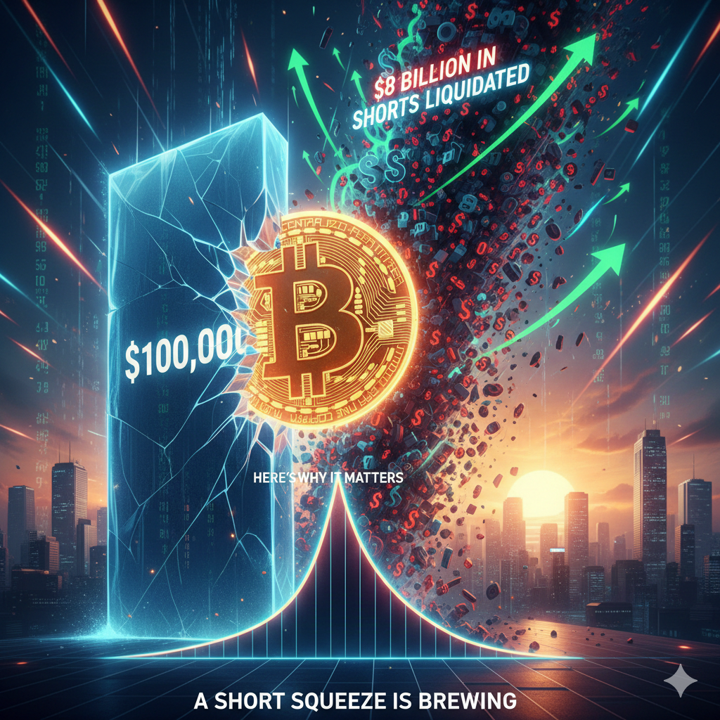 The $100,000 mark is shaping up to be the next major battleground in this Bitcoin cycle. With nearly $8B in short positions waiting to be liquidated, the push into six figures could be violent, rapid, and psychologically transformative.