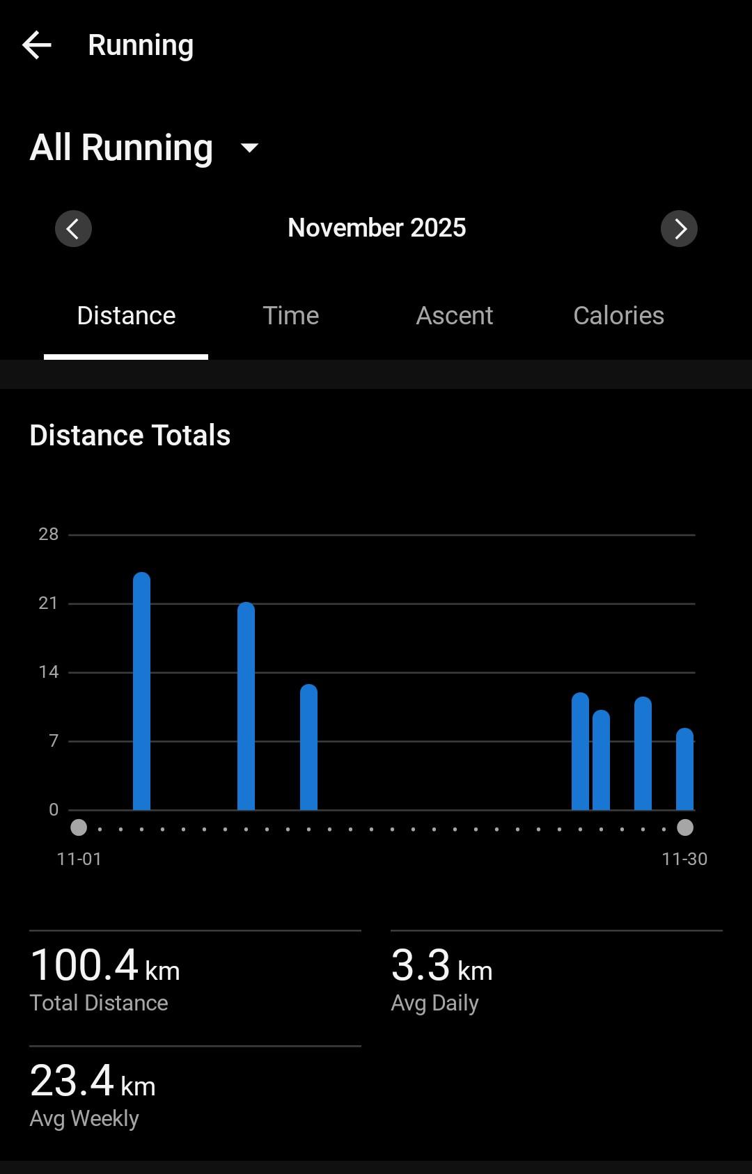Unrelated side note, I'm already sitting at 1418km ran this year, which means I'm only 182km from reaching 1600km or 1000mi. I thought it would be cool to make it to 1000mi by the end of the year. I've never run that much in a year in my life and it would be pretty cool to be able to say that I ran 1000 miles in a year at 40 something years old. But running 182km in December is a challenge for me, especially with the lower back and hip pains bothering me. I'll type up a 2025 end of year running summary post at the end of December to report on how I did in December and also how I did this year.