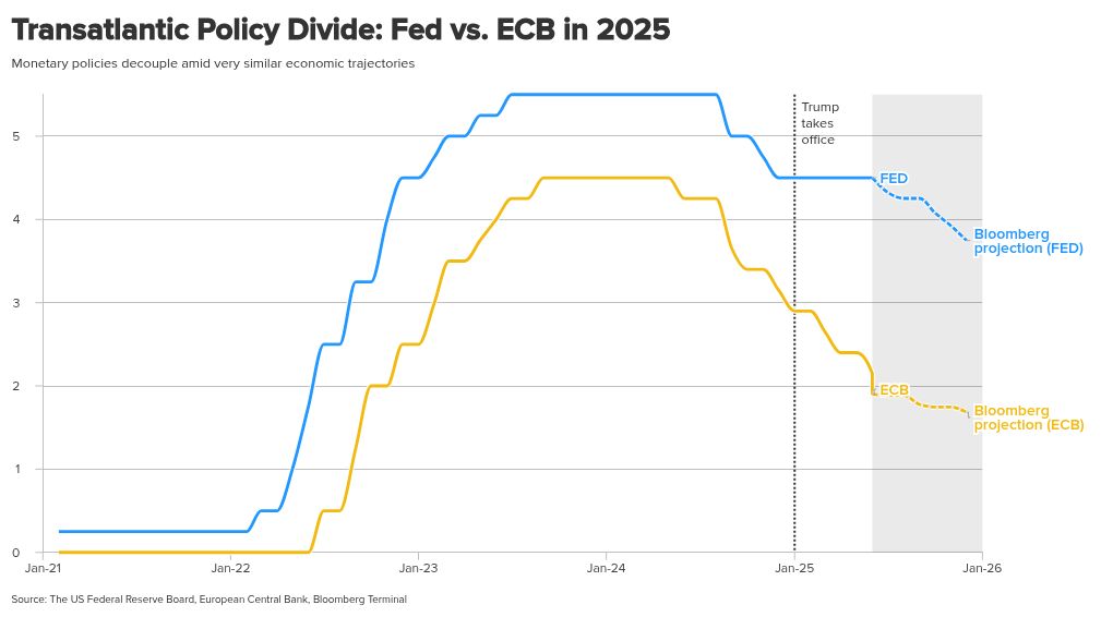 After years of nearly aligned rate policies, the recent rate-cutting cycles of the United States and European Union (EU) central banks have recently not been in lockstep.