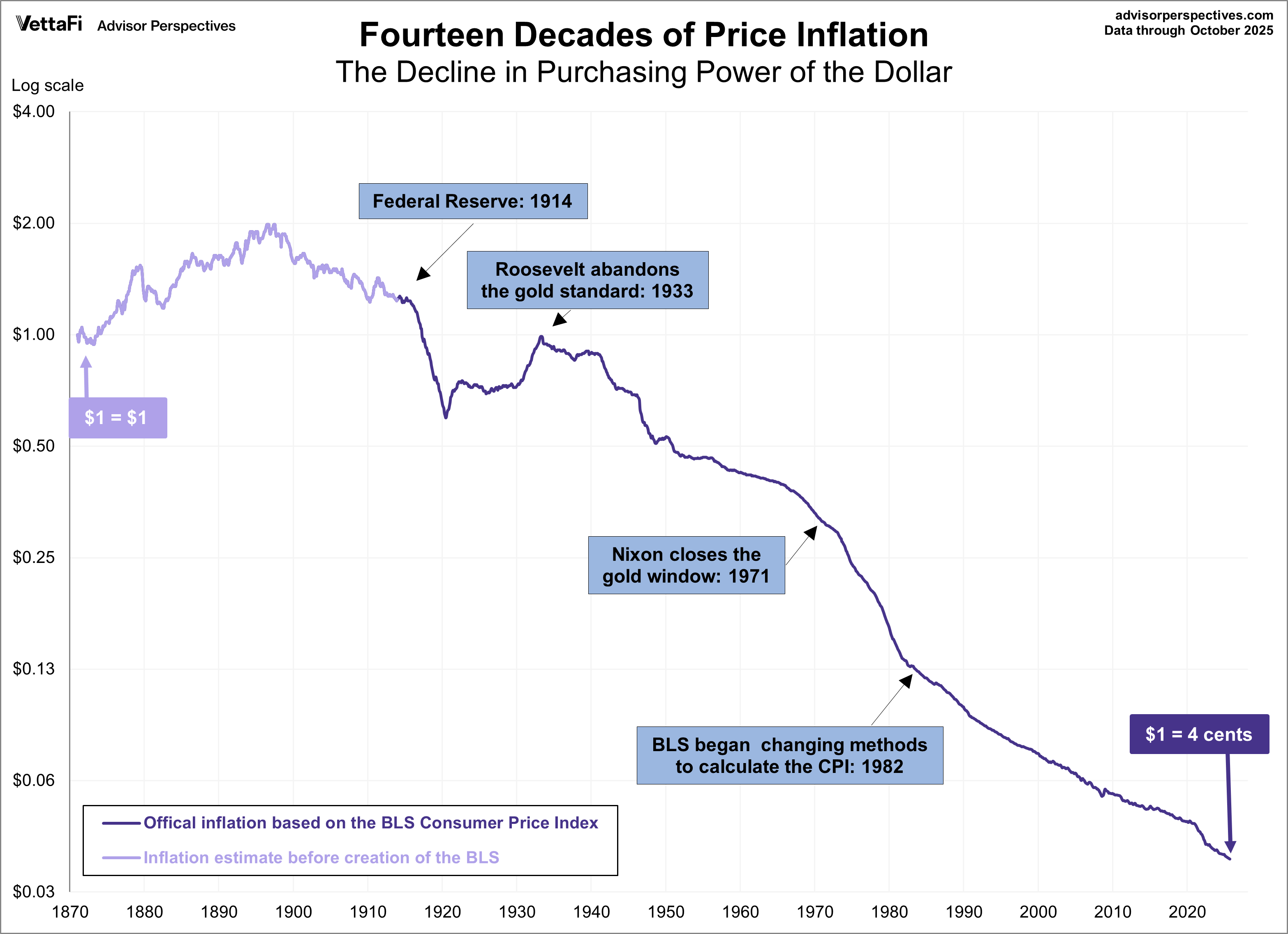 Really cool chart showing the dollar’s purchasing power over a 150 plus year span.