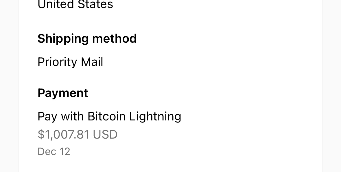 Full disclosure..... This shop uses BLFS (Bitcoin Lightning For Shopify), which we ( https://rizful.com/ ) developed: https://github.com/MegalithicBTC/BLFS .... if you know any Shopify stores, please encourage them to run BLFS to accept Lightning payments! It works with any NWC service, including Alby, Rizful, CoinOs, Minibits, etc.....