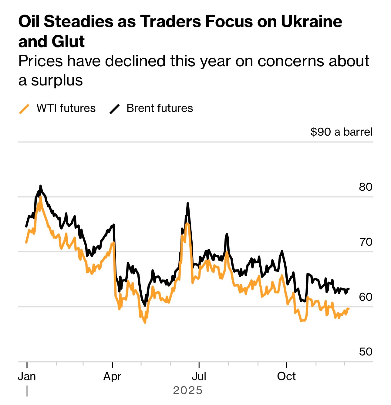 Brent crude held its gains for two days, amid a mix of discussions about a ceasefire in Ukraine and concerns about oversupply.