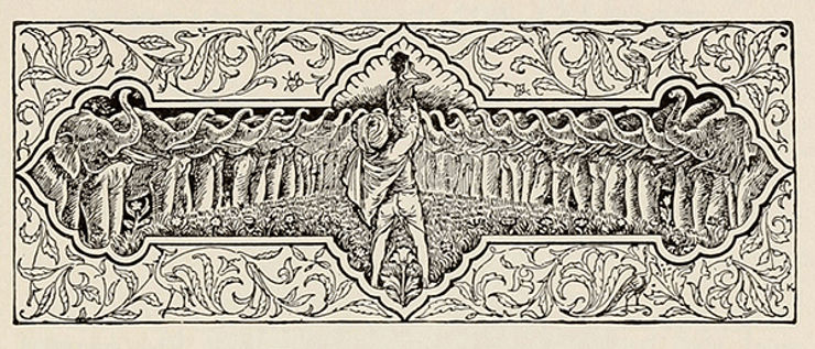 The illustrative header for “Toomai of the Elephants” the sixth story in The Jungle Book, by John Lockwood Kipling