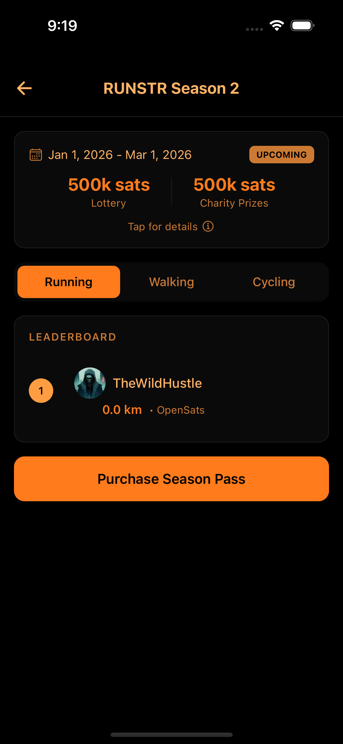 RUNSTR Season 2 starts January (2 month long distance based competition for charity, with a lottery prize pool for the plebs)