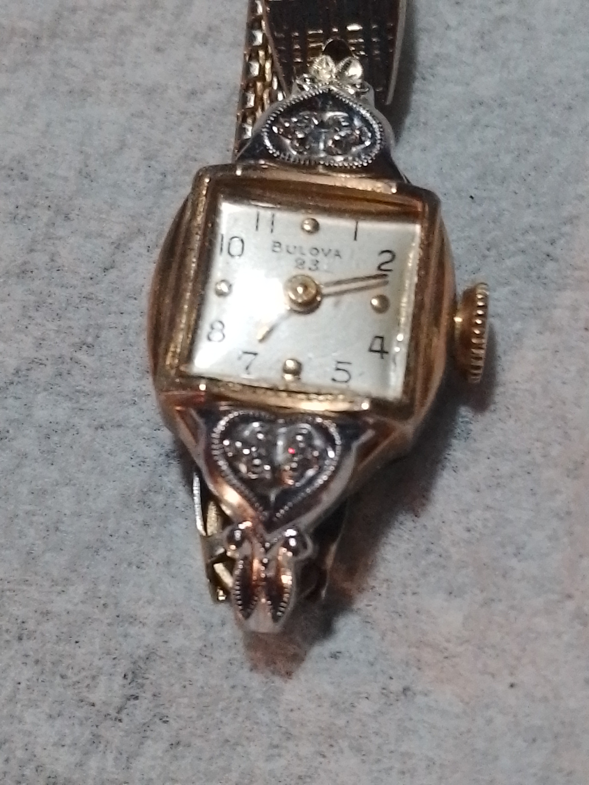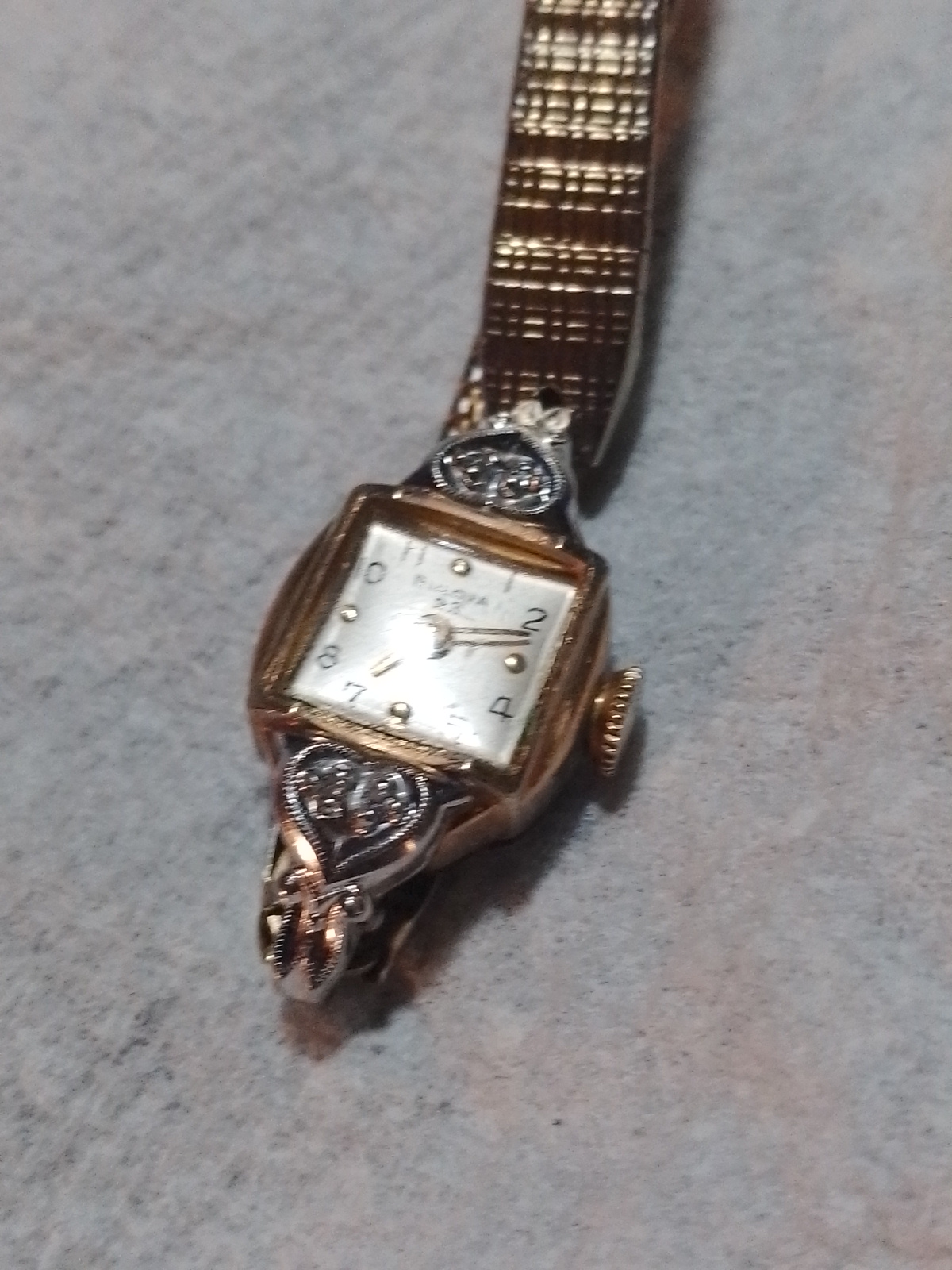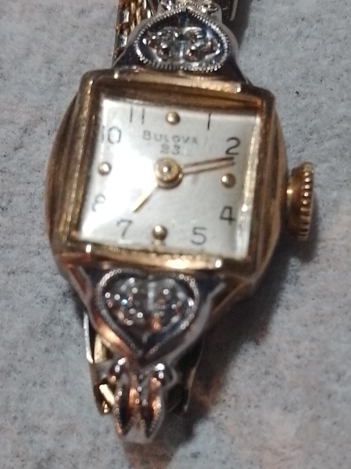 Woman's Antique Bulova 18k Rolled Gold Wristwatch w Diamonds