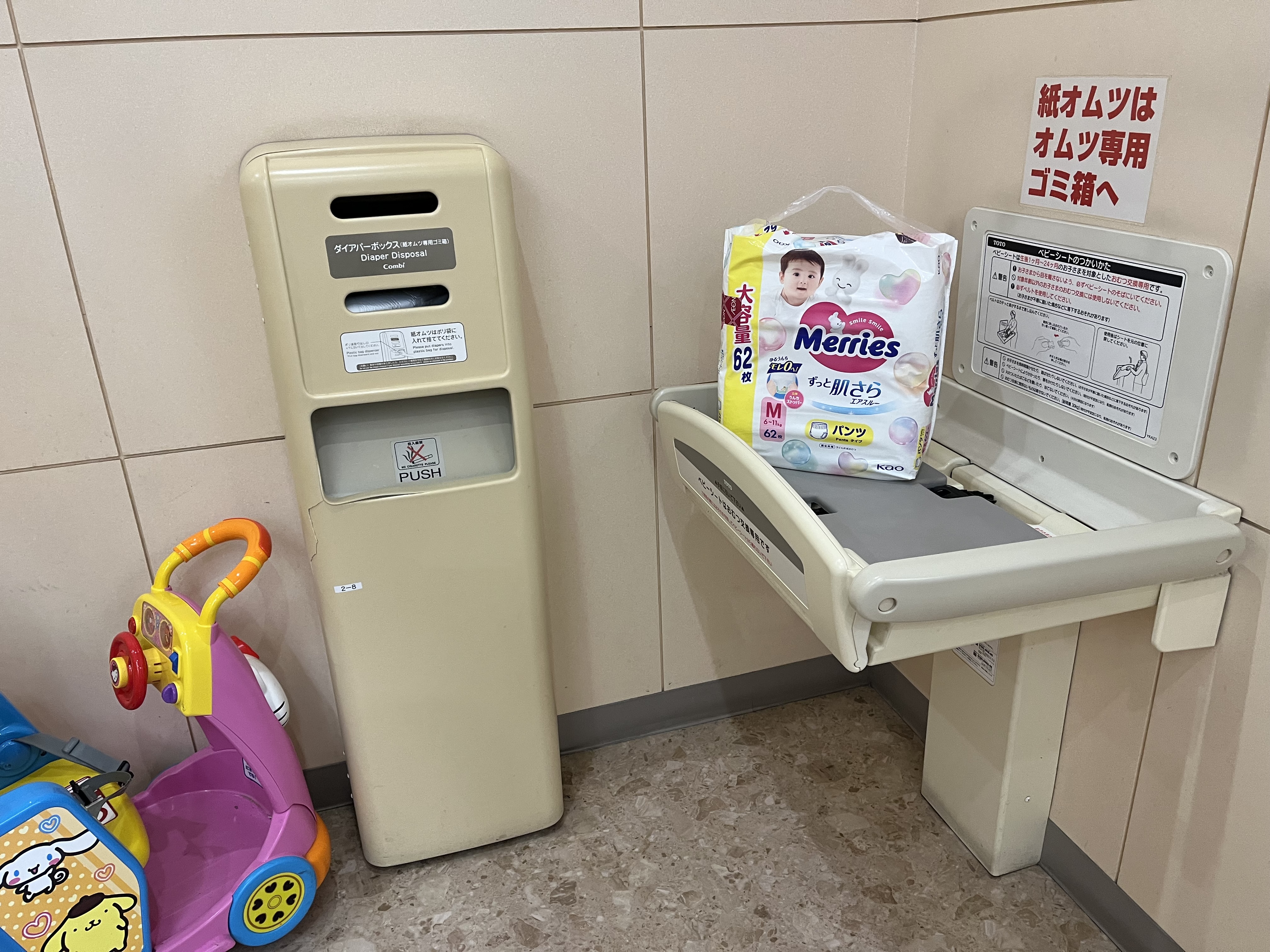 Before I know it, it’s diaper changing time. I just walk into any public restroom and trust that a changing table will await me. Some toilets even have a diaper disposal bin so that I don’t need to worry about throwing away her soiled diaper.
