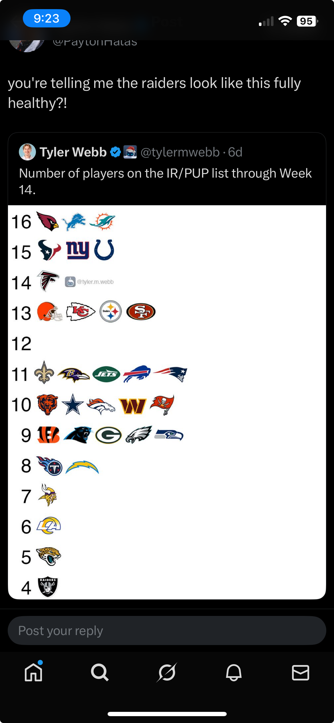Rams moving up the list. Slowly but I think they only had 2 a month ago.