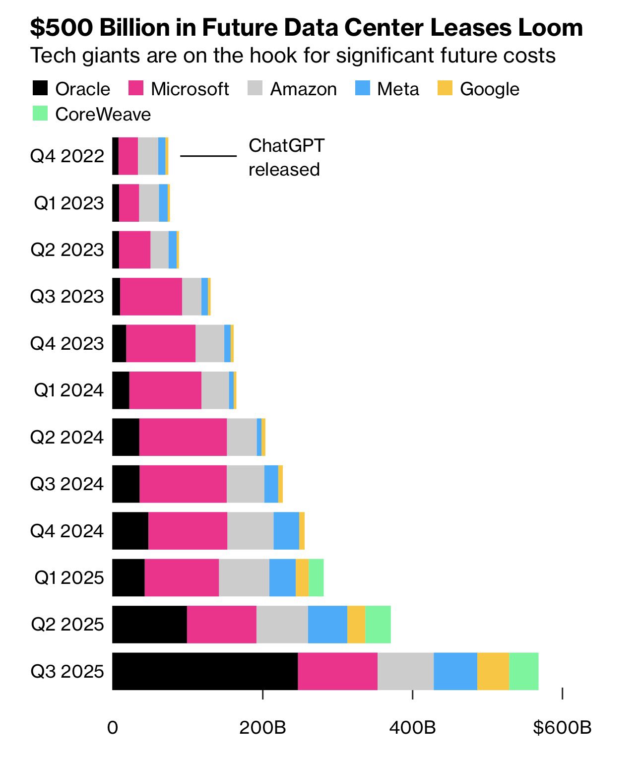 With over US$500 billion in future leases, the cost of AI capex is starting to weigh heavily.