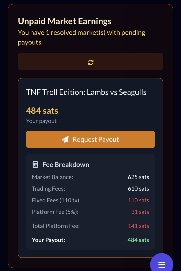 It should be noted that Predyx being in beta, besides the costs of operations, has lost a ton of sats standing up all these markets with very little fees earned so we can all essentially beta test the product. They are far from making a killing, quite the opposite in fact.
