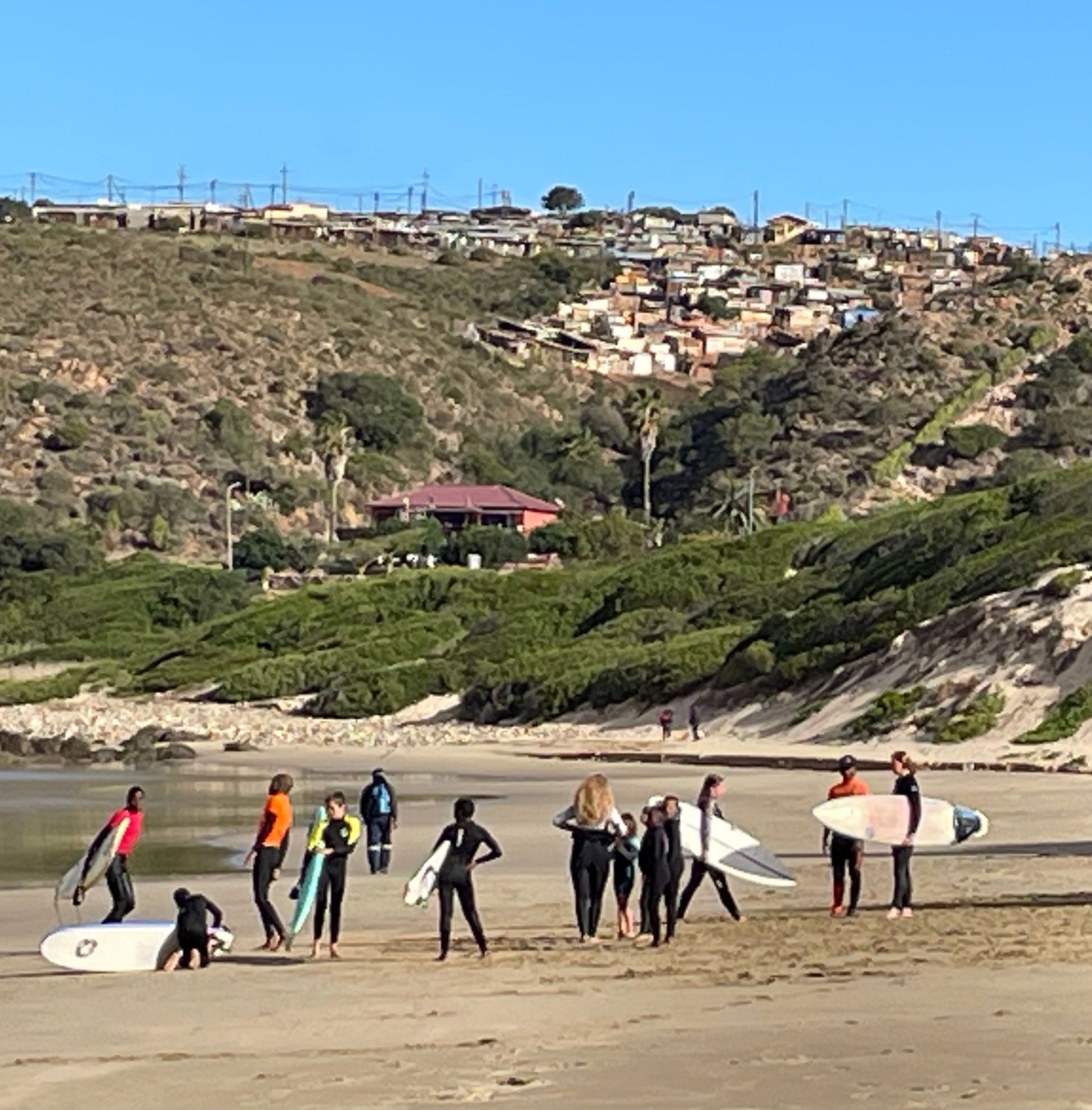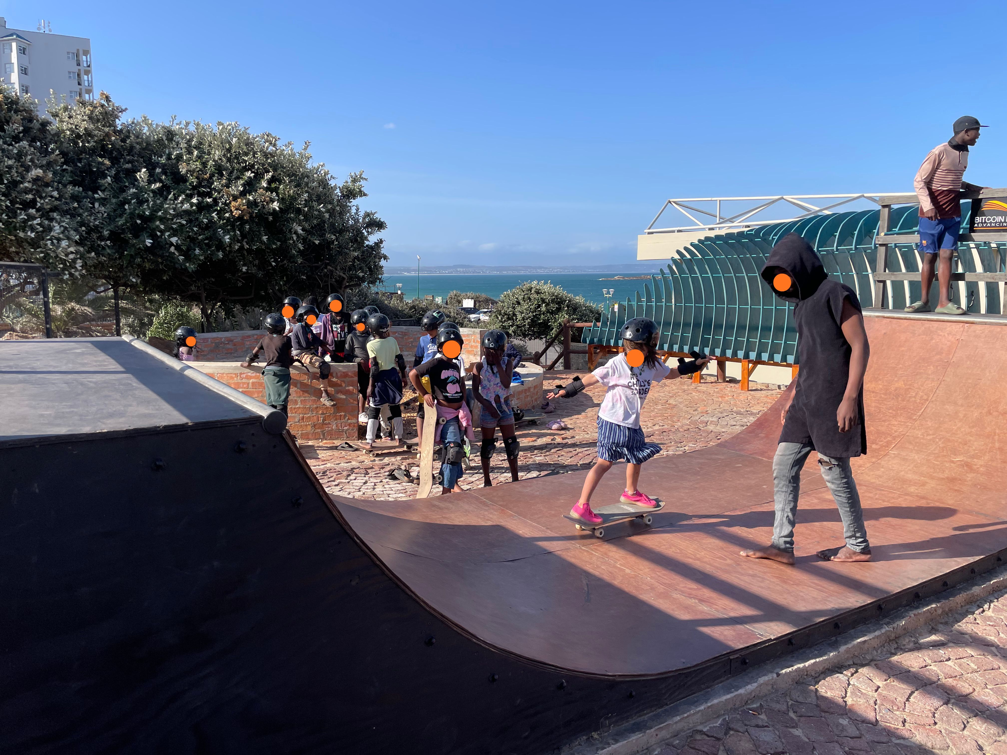 Surfing has classically been a sport for privileged, mostly white people who can afford the board and time to spend their free time riding waves at beaches around the world, but in Mossel Bay there are ~50 kids from ages six to teenagers coming to the beach from the township to work hard and have fun. The sport takes training (my kids developed serious core strength and balance in the short time they participated in the program!), discipline, and perseverance. In a world where attention spans are decreasing dramatically, I watched as 30-50 kids bobbed patiently on their surfboards, waiting for the right wave. These kids would paddle out over and over (I mentioned strength training, right?) to hone their skills and stretch their abilities each day. On days when the surf was too rough or the winds too high, the participants would don skateboarding gear and work on a similar skill set, but on the halfpipe or bowl for the more advanced skaters. It was beautiful to see groups of young people cheering each other on as their friends demonstrated new skills. I will remember always the moment my daughter hit the halfpipe bar for the first time and the whole line of kids erupted with cheers- her face lit up with pride and joy!