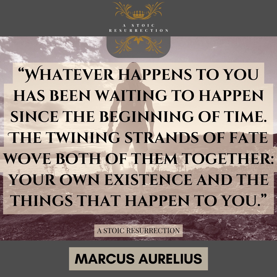 "Whatever happens to you has been waiting to happen since the beginning of time. The twining strands of fate wove both of them together: your own existence and the things that happen to you.β β Marcus Aurelius
