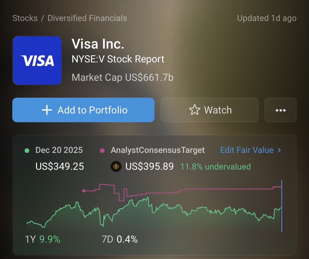 Yes that Visa the payments giant! The company operates VisaNet, a transaction processing network that enables authorization, clearing, and settlement of payment transactions. It also offers credit, debit, and prepaid card products; tap to pay, tokenization, and click to pay services