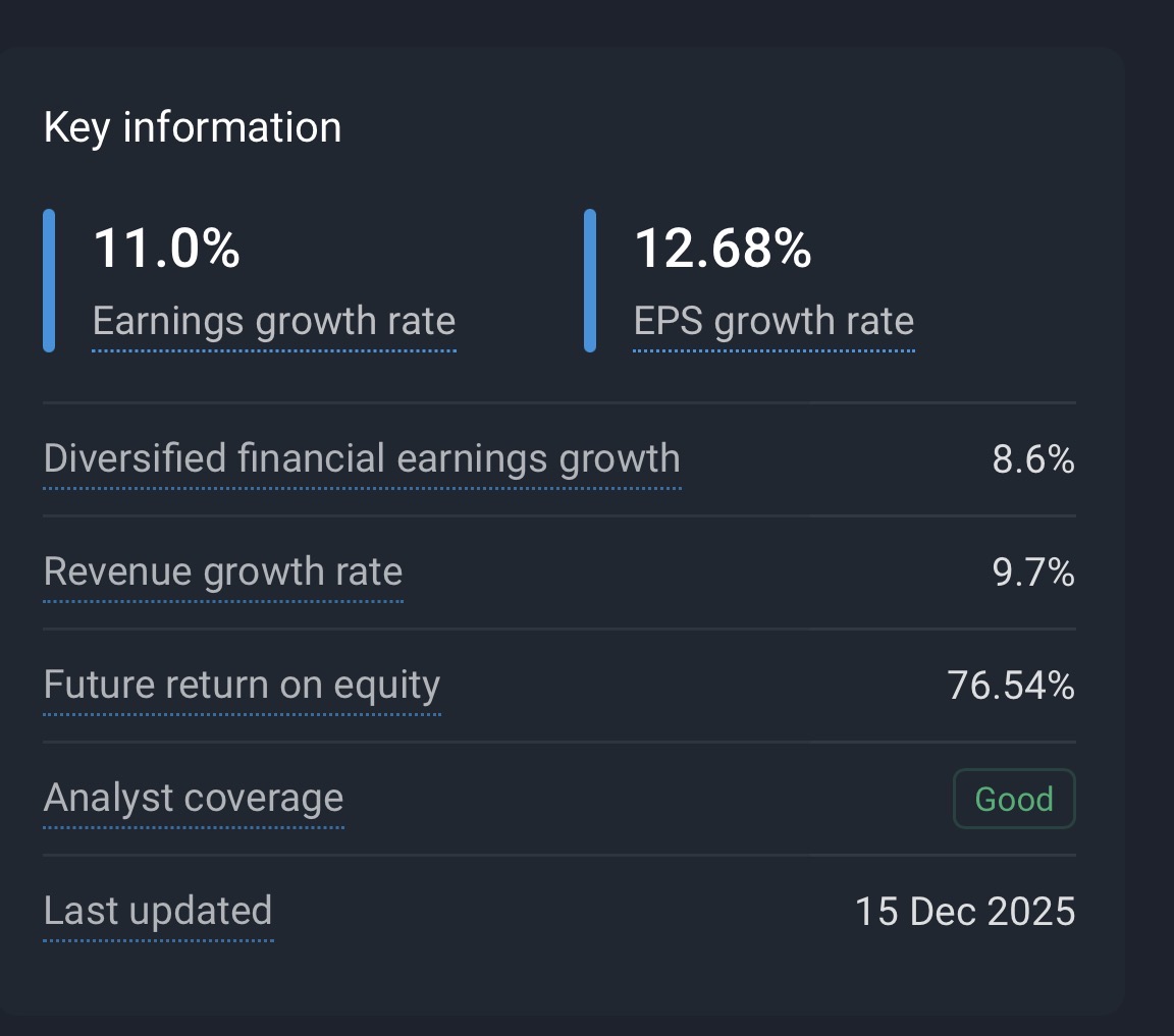 While the growth is projected at 11% which is kinda meh for a PE that is 33 investors are paying a premium for a great business that pays a dividend to boot.