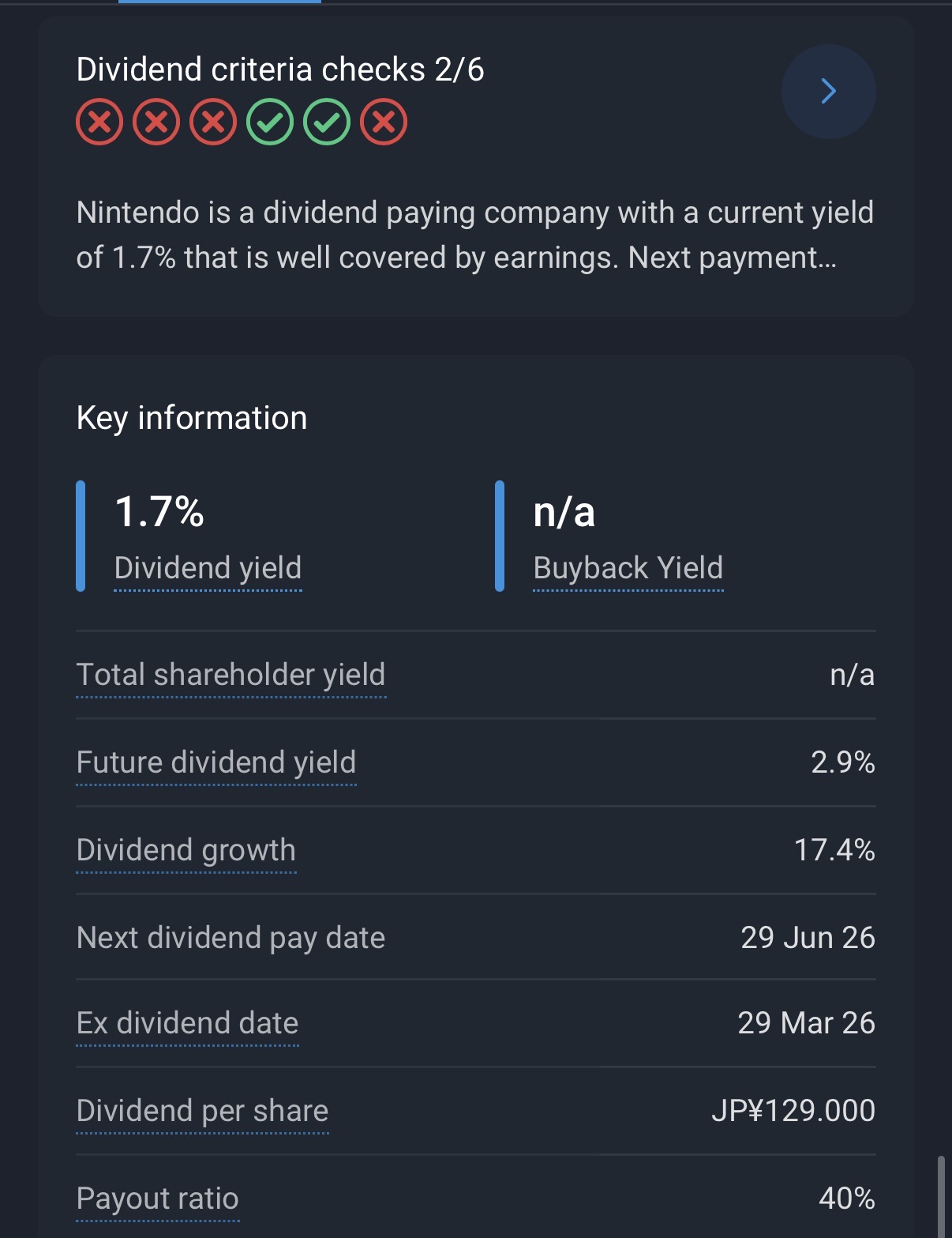I am up about 43% since buying some shares almost 5 years ago. While bitcoin performed much better during this time frame Nintendo makes awesome products that I and millions enjoy around the world. Plus the stock pays a dividend.