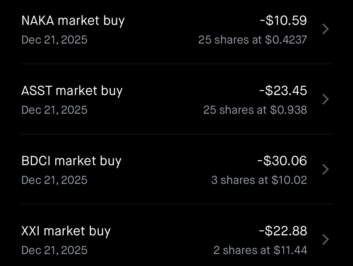 A YouTube bitcoiner is hyper bullish on MSTR and ASST. Have 5 to 10 year old time for unreal fiat gains. I often think if those price target are hit then a loaf of bread will be $50 but if the growth is more than the inflation rate then you win but wage earners get crushed. Salary earners as well.