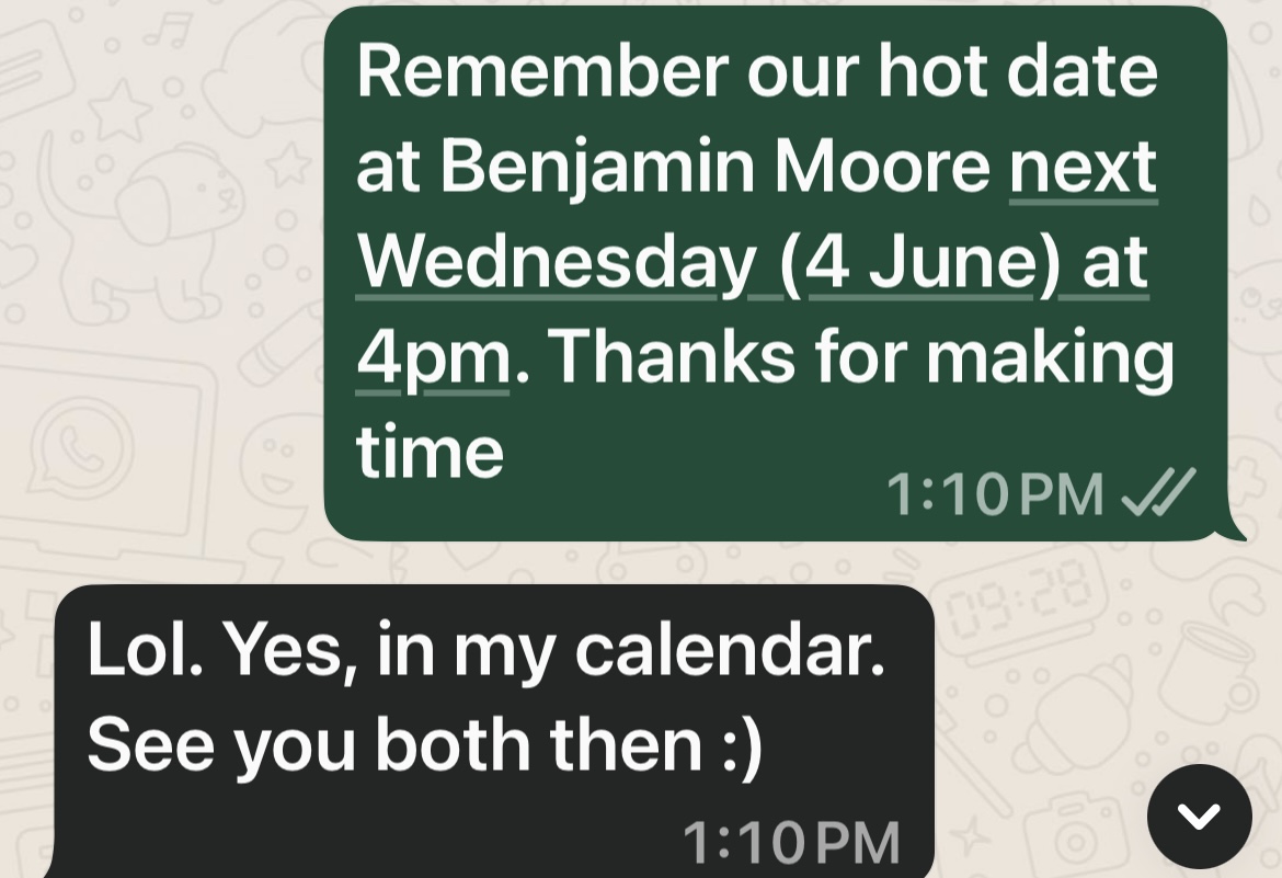 3. She came on site (our flat) and provided weekly updates through that WhatsApp group.