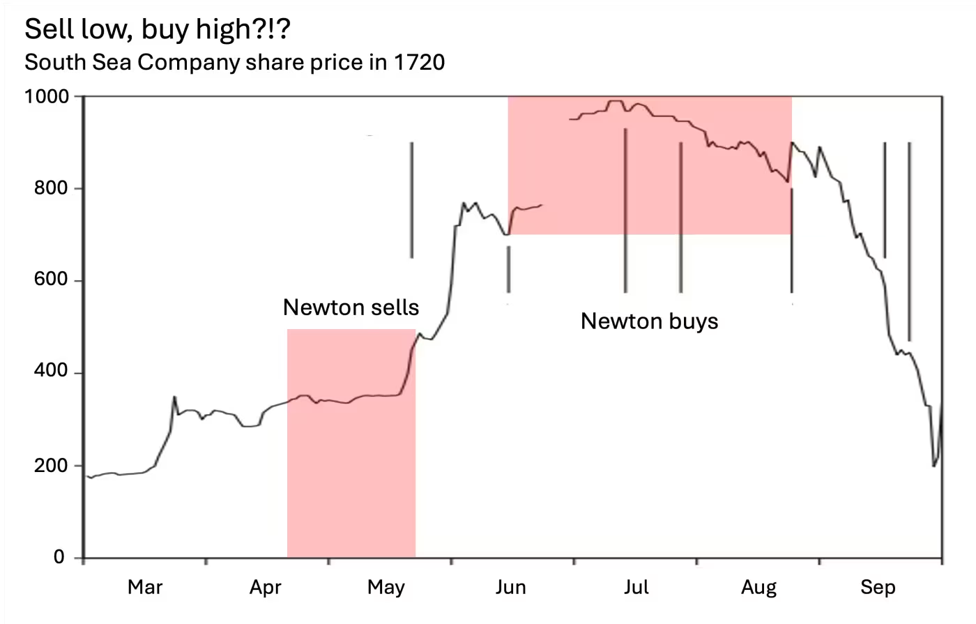 Newton lived and invested through the South Sea bubble — one of the most famous financial manias of all time. And in the careful work of Professor Odlyzko of the University of Minnesota, we can see quite how badly he did.
