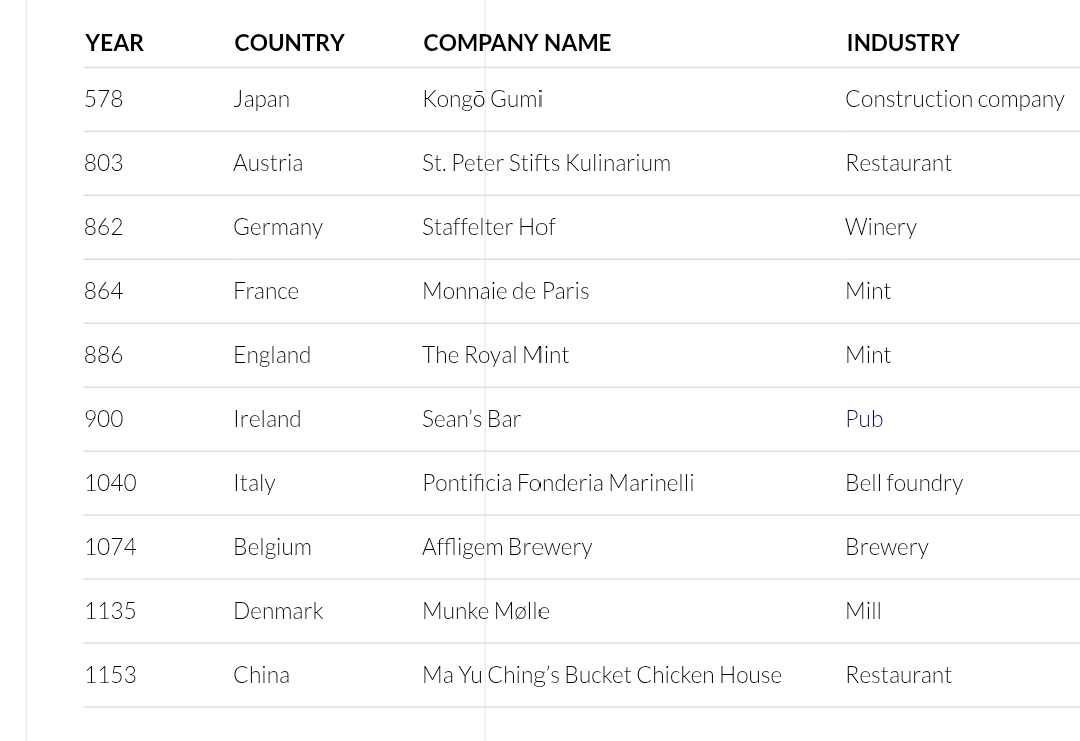 ......Read more here: https://businessfinancing.co.uk/the-oldest-company-in-almost-every-country/