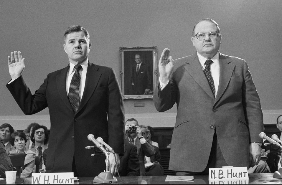 In the early 1970s, brothers Nelson Bunker Hunt and William Herbert Hunt (heirs to a Texas oil fortune) began accumulating silver massively as a hedge against high inflation after the end of the gold standard (1971). They bought physical silver (bullion) and futures contracts on COMEX, eventually controlling about 200 million ounces—more than half of the world's private supply at the time.
