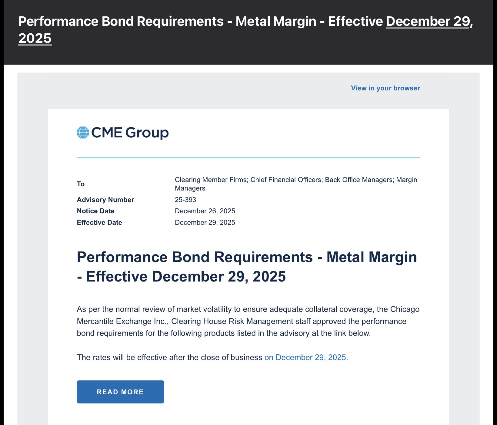 In 2011, the CME increased its margin 5x in 9 days. Silver fell 30% in weeks