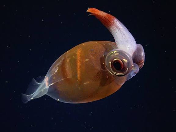 The organism displays traits typical of extreme deep ocean life, including partial transparency, reduced visual structures, and a slow, energy efficient mode of movement.These adaptations allow it to survive in environments characterized by high pressure, low temperatures, and minimal food availability.