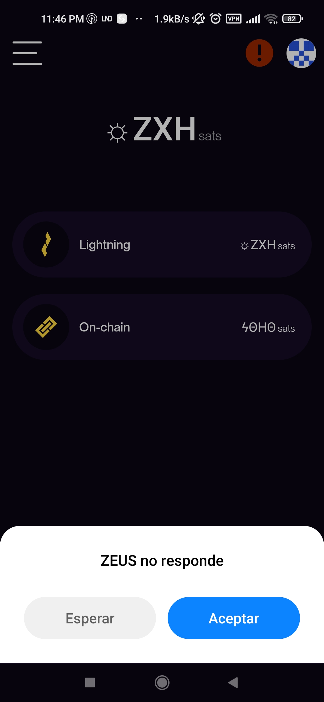 Another detail is that the red logo keeps appearing, showing a large number of Zombie channels, and even after restarting the app, it keeps appearing. But the most puzzling thing is that when I have the app open, it tells me that the application is failing. If I select “wait,” I can continue to move around within the app (and every few seconds the message reappears), and if I select “accept,” the app closes immediately.