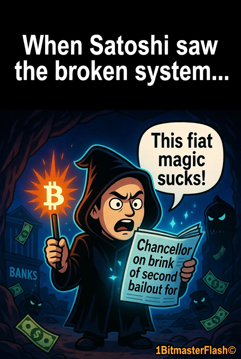 When Satoshi saw the banks getting bailed out AGAIN… he knew fiat magic was broken.