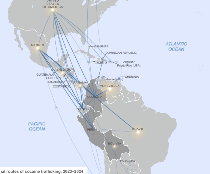 This is (for me) the weakest of all things. This says that Venezuela is taking drugs to US and making deals through the Cartel de los Soles, which existence is unknown even today. When we look at the statistics, Venezuela is not the primary corridor, major cocaine production comes from Mexico and Colombia, with Europe constituting a major destination via maritime traffficking.