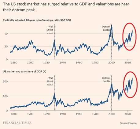 The US stock market cap to US M2 Money Supply ratio hit a record 306%.