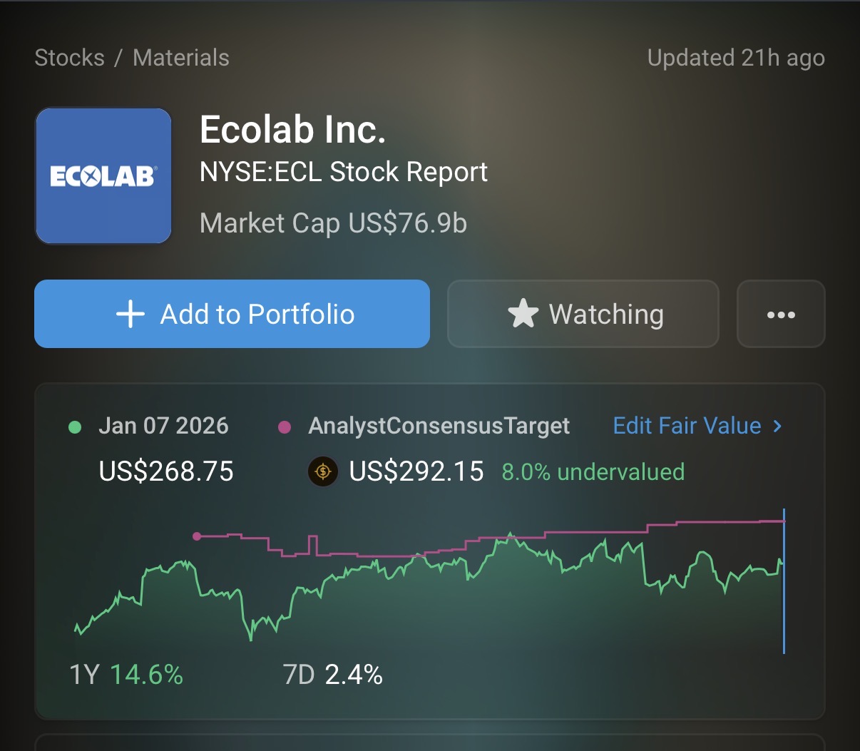 One day I was thinking about trying to invest in the makers of Clorox Bleach and went down the cleaning products rabbit hole and found this company Ecolab. I looked at their fundamentals and thought wow this company looks good let me throw them on a watchlist! So here we are!