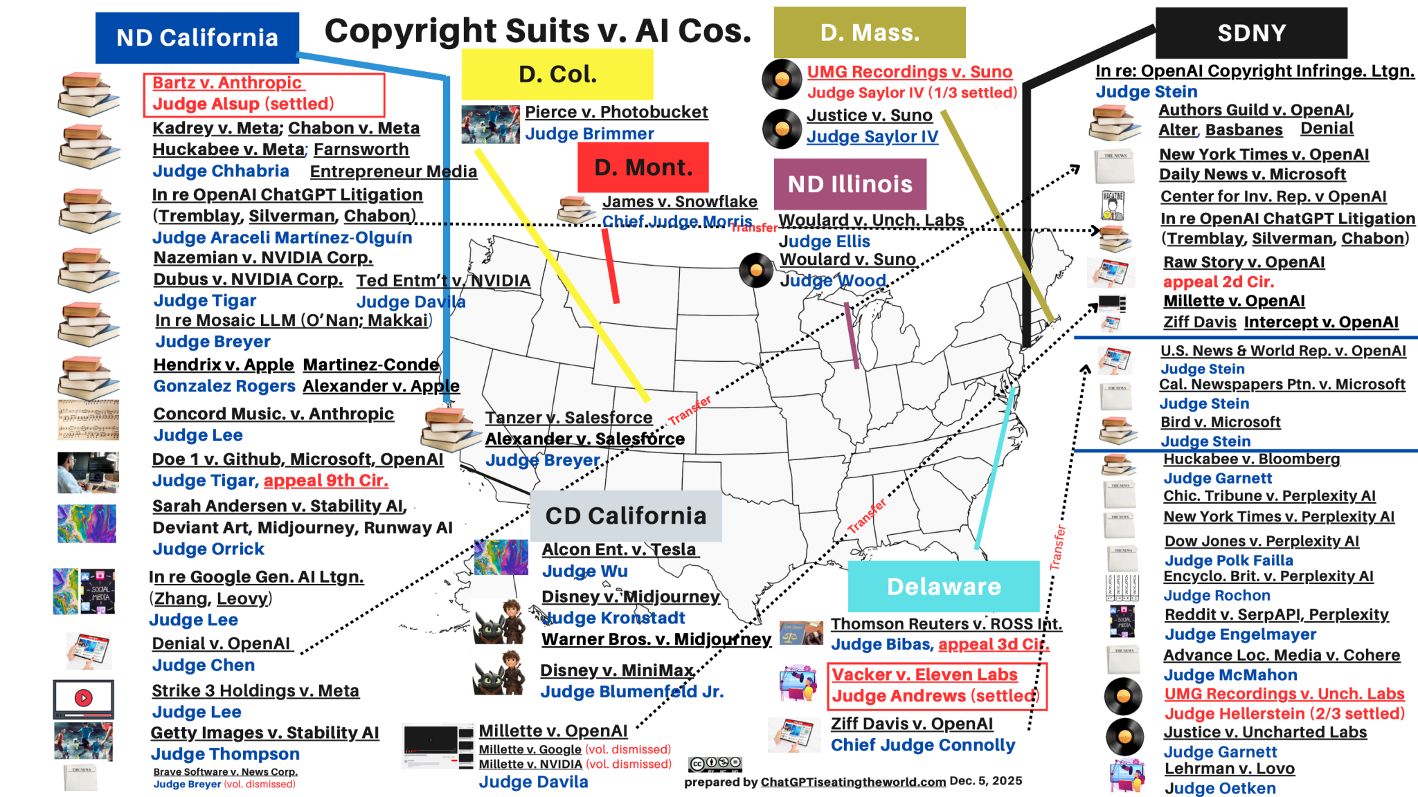 Map of Copyright Suits v. AI (Dec. 5, 2025) = 65 suits