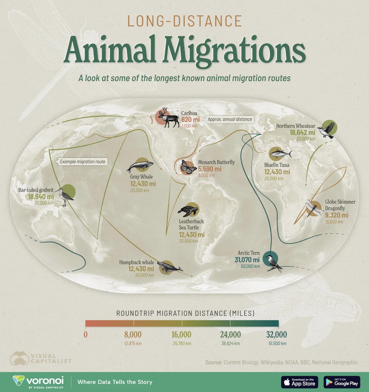 Read more at Visualcapitalist 🔗 https://www.visualcapitalist.com/mapped-worlds-longest-animal-migrations/