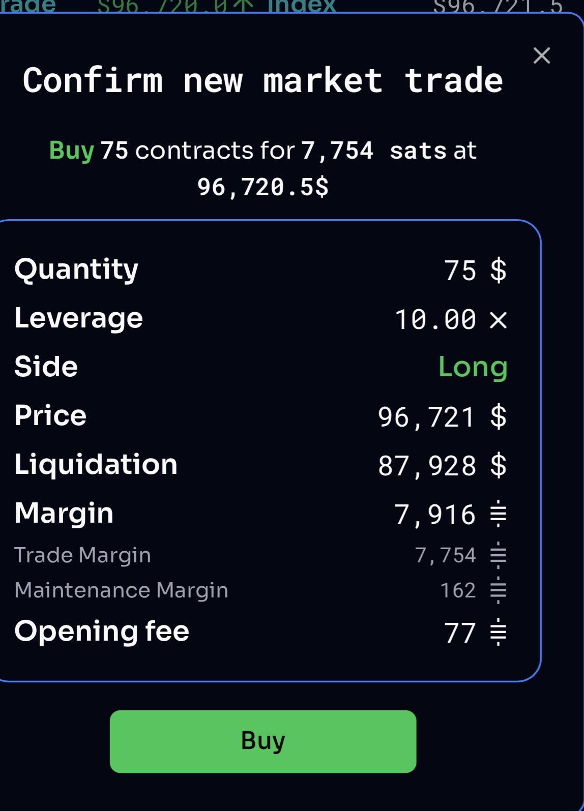 Yeah 10x to the down side sucks for sure. But my risk is low due to using extremely small capital. Now if I was doing 100k or 1M sat positions I would def lower the leverage ratio