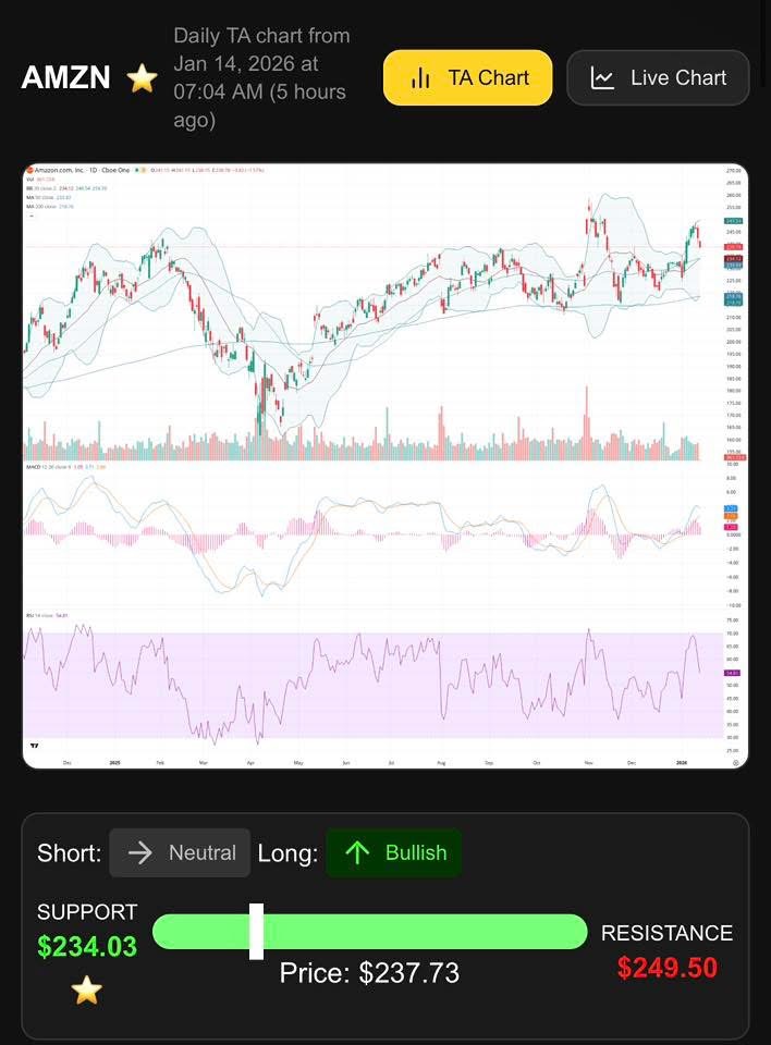 picked up a small bag of AMZN today… safe if boring pick they seem like they will continue to benefit from AI and automation…