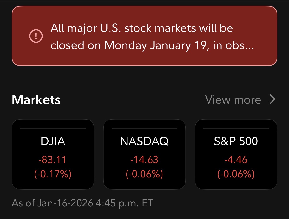 Markets are closed till Tuesday. More time to think about the next move.