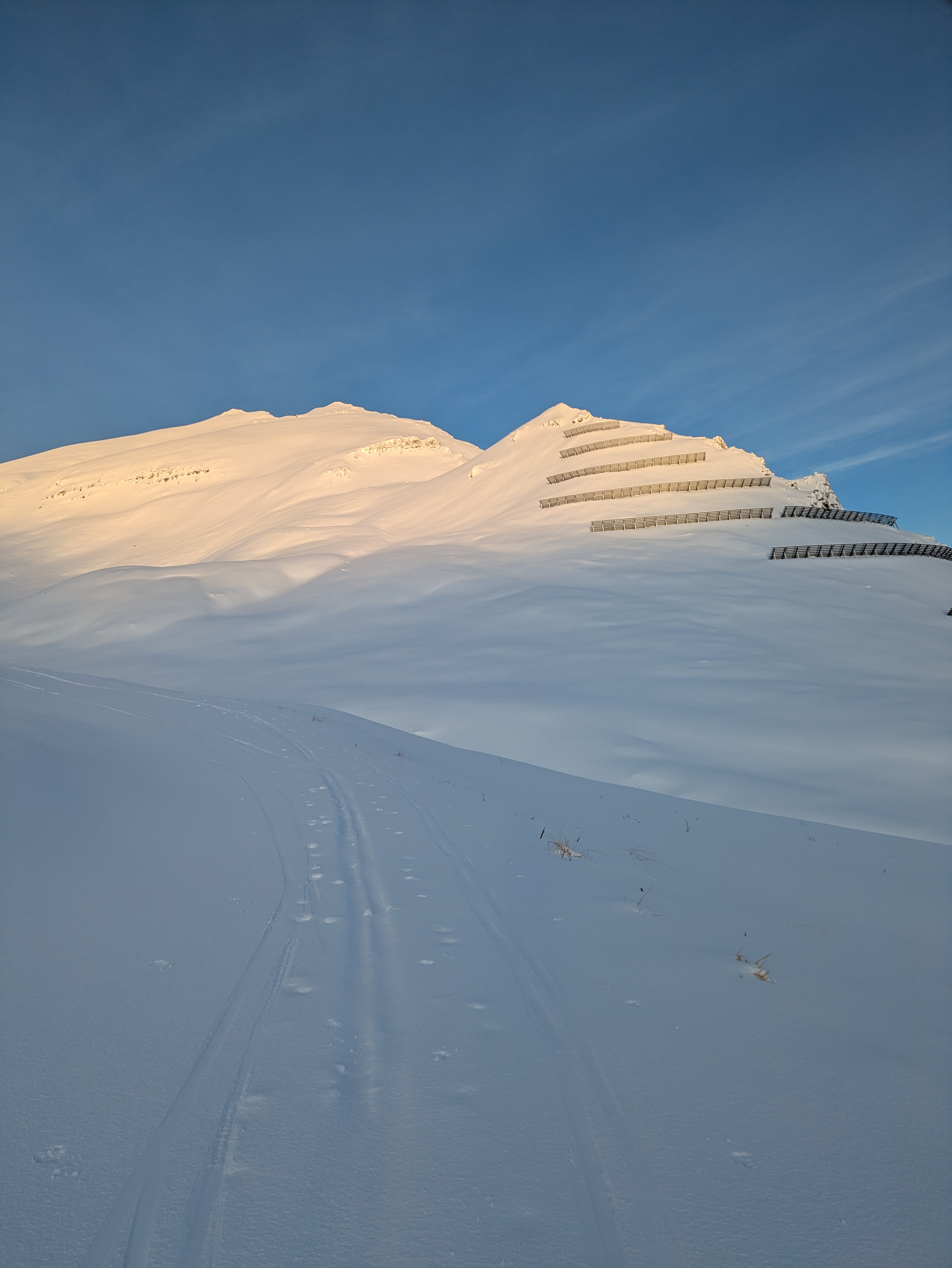 With only the top portion frozen of the 50 cm or so snow that fell over the last few days, the powder below treacherously waiting, today’s hike was an endless Stairmaster machine itself on an incline. Every single step, swish snow up to my thighs.