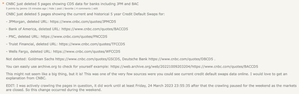 CNBC just deleted 5 pages showing CD5 data for banks including JPM and BAC